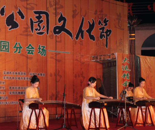 2010年深圳市第五届公园文化节期间,大音琴院首次将古琴雅集搬进洪湖公园分会场,绿地空间举办场露天音乐会。将古筝的清越、笛子的悠扬、古琴的浑厚、二胡的深情与湖光山色交织,为市民献上了一场自然与艺术交融的视听盛宴。