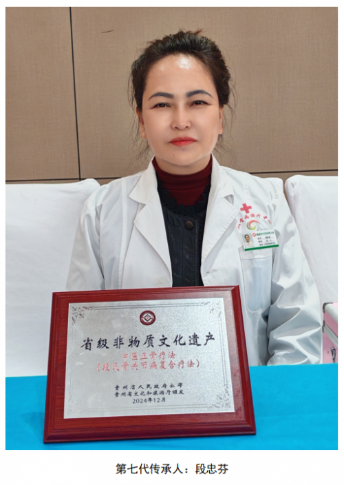 段忠芬作为“段氏骨关节病复合疗法”的第七代传承人,同时身兼贵州德盛堂医药科技有限公司与清镇德盛堂中医诊所负责人,以及清镇市政协委员。其自幼浸润于家族浓厚的中医文化氛围中,耳濡目染间,承袭的不仅是先辈的诊疗技艺,更将“治病救人、兼济贫弱”的信念刻进了骨子里。在段忠芬眼中,非遗从不是束之高阁的展品,其生命力恰恰在于与当下社会的共鸣,如果一门治病救人的技艺,只能服务少数人,却对弱势群体的病痛视而不见,那么它便失去了中医“仁爱”的精神内核。